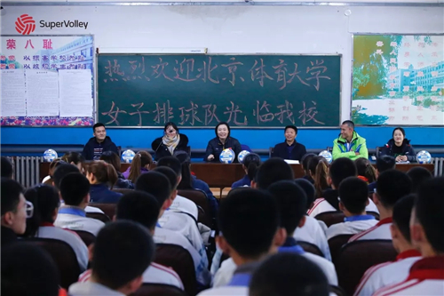 在交流活动中,主教练姜威及助理教练杨菲向学校领导以及学生们介绍了金沙官方登录入口和金沙官方登录入口女排近年来的优异成绩,并依次介绍了女排队员们。随后,第一高级中学的校长介绍了学校体育教育基本设施的建设情况以及学校男女排队伍发展情况。
