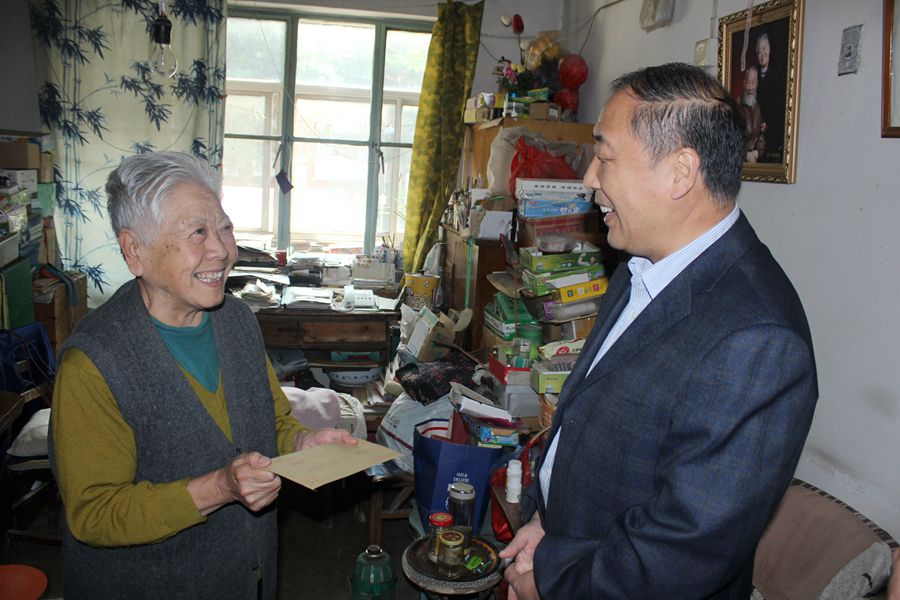 国庆节前夕,校领导池建、程建平、刘大庆、夏伦好、胡扬分别带领学校组织部、人事处、校(党)办、离退休人员处等相关职能部门负责人,走访慰问所有中华人民共和国成立前参加革命工作的离休老同志,把党和政府、学校的关怀和温暖送到了每位老同志心上,感谢老同志们革命工作几十年来所做出的卓越贡献,老同志们深受感动。