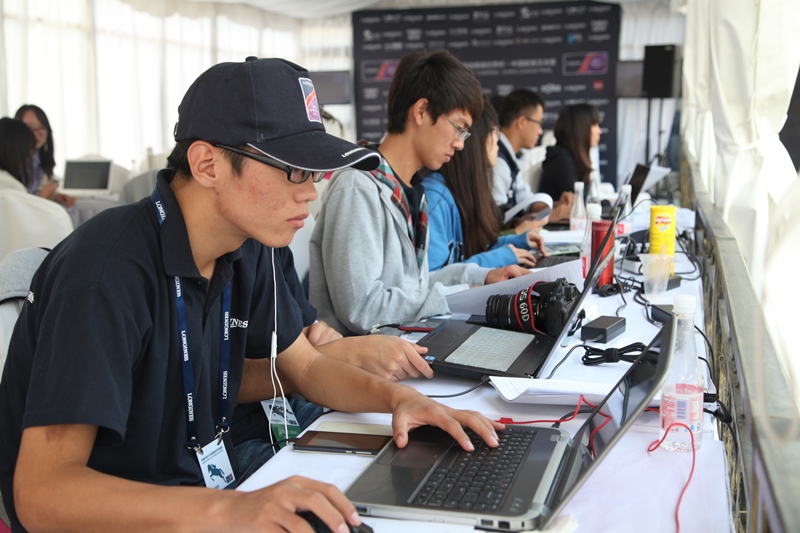 媒体区的志愿者是所有志愿者中工作时间最长的。他们的工作内容包括新闻采访、赛场速记与写作、现场摄影、官方微信、微博的发布。在赛场南边的媒体区内,他们注视着场上情况,用笔、计算机和相机记录下比赛的情况,通过对收集信息的分类和整理将新闻以最快速度进行呈现,争取在第一时间内将最新赛况告诉受众。下午的比赛结束后选手和观众退场离开,媒体区志愿者还要协助召开新闻发布会,对选手进行采访以及完成最后的新闻通稿。他们凭借着自己的专业水准,受到了赛事组织会的赞誉。