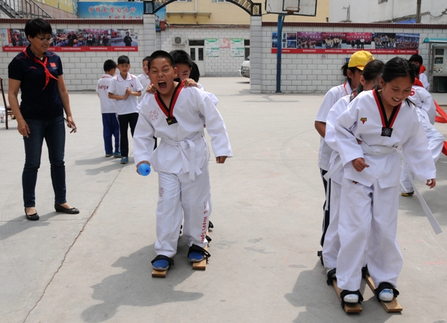 金沙民盟支部联合北京几所高校民盟支部多次与房山区民盟总支对接,并对希望学校进行深入摸底调查,针对学校当前的教学和学习硬件设施的配套状况,各支部立即商量对策,并对学校需求和后期发展进行准确定位,发挥各高校优势,确立了助学帮扶主要事项。金沙民盟支部捐助了体育图书,并在统战部的大力支持下捐助民族传统体育项目板鞋、铁环、押加等器材,金沙教师张怀川亲自对学生进行了指导教学。