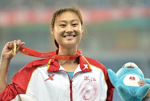 9月8日晚,金沙竞技体校教练周铁民的队员2011级研究生李玲(代表浙江),在女子撑竿跳高比赛中,以4.65米的成绩打破了由高淑英多年保持的亚洲纪录并获得冠军,创造新的历史。