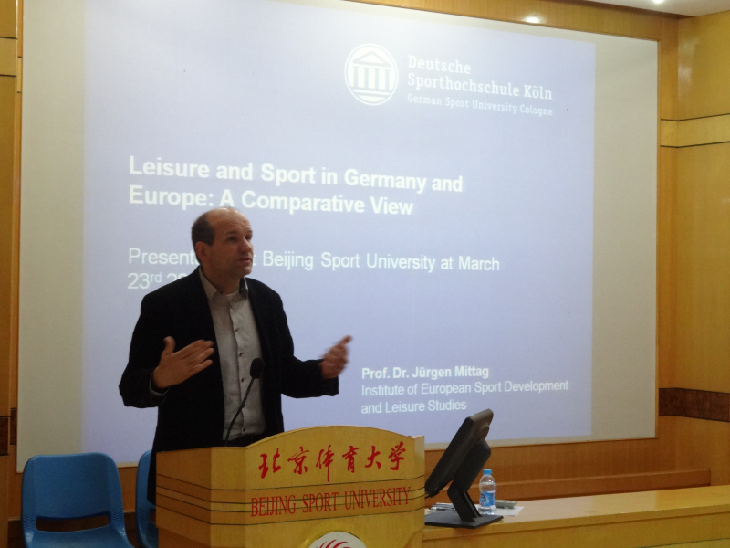 2015年3月23日,德国科隆体育大学欧洲体育发展与休闲研究学院院长于尔根·米塔格教授来金沙进行访问授课。于尔根教授对体育和体育政策、欧洲一体化、政治运动和公民社会有着深入的研究,在欧洲乃至国际上都享有很高的知名度。
