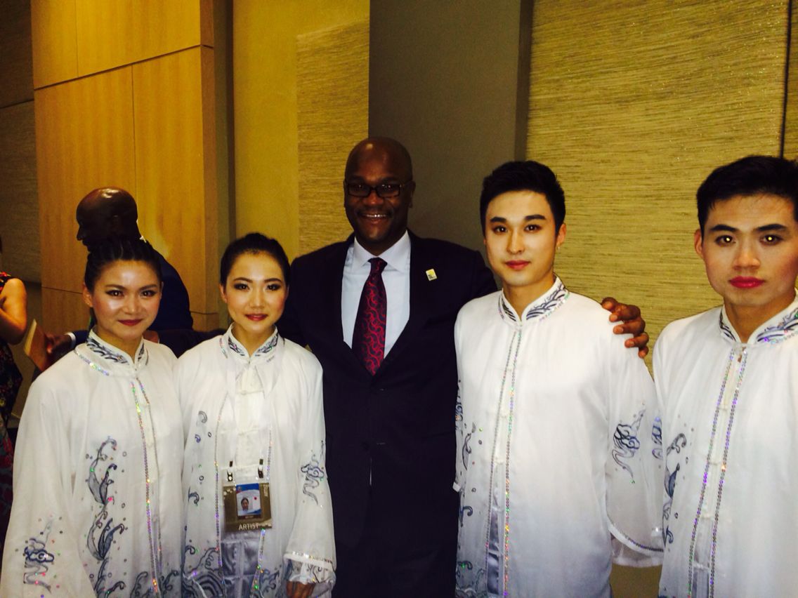 2015年11月,金沙官方登录入口接受文化部演出任务,在校领导的大力支持下,派出国际教育学院田青副院长,武术学院李巧玲教授,田梦艺老师及研究生冯凯杰、尹洪攀同学,参加在南非“中国年”闭幕式暨第六届中非合作论坛约翰内斯堡峰会文艺演出。