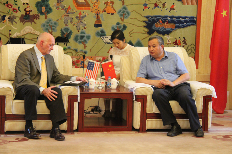 人到金沙访问交流。金沙池建副校长亲切会见两位教授并与其进行会谈。双方就两校间学生交流、专家讲座等方面进行会谈。参与此次会谈的还有运动康复系主任王安利教授、副主任矫伟教授。