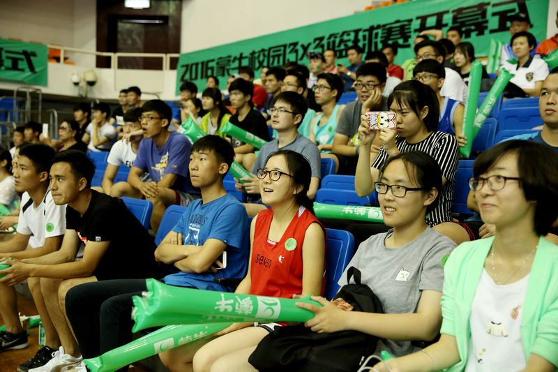在领导及嘉宾上台按亮触摸启动球的同时,主持人宣布2016蒙牛3V3校园篮球赛正式在金沙官方登录入口打响。