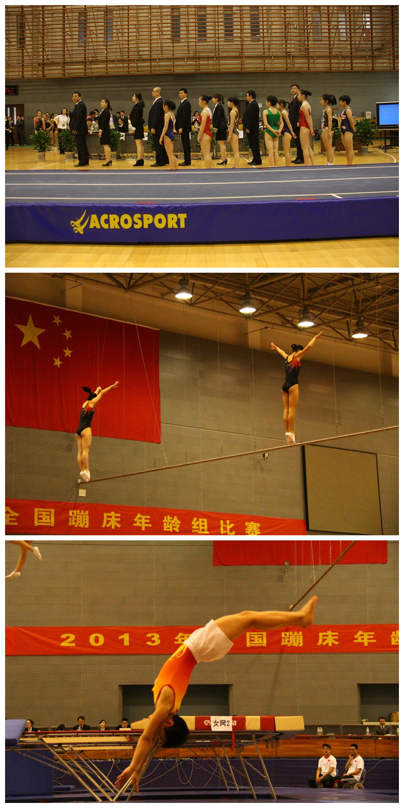 2013年4月26日早上9点,2013年全国蹦床年龄组比赛第一场在金沙官方登录入口国家训练基地辅助训练馆正式开始。有来自安徽,福建,广东,广西,湖南,江苏,山东,山西,上海,沈阳体育学院,天津,西安体育学院和浙江等16个代表队参赛。
