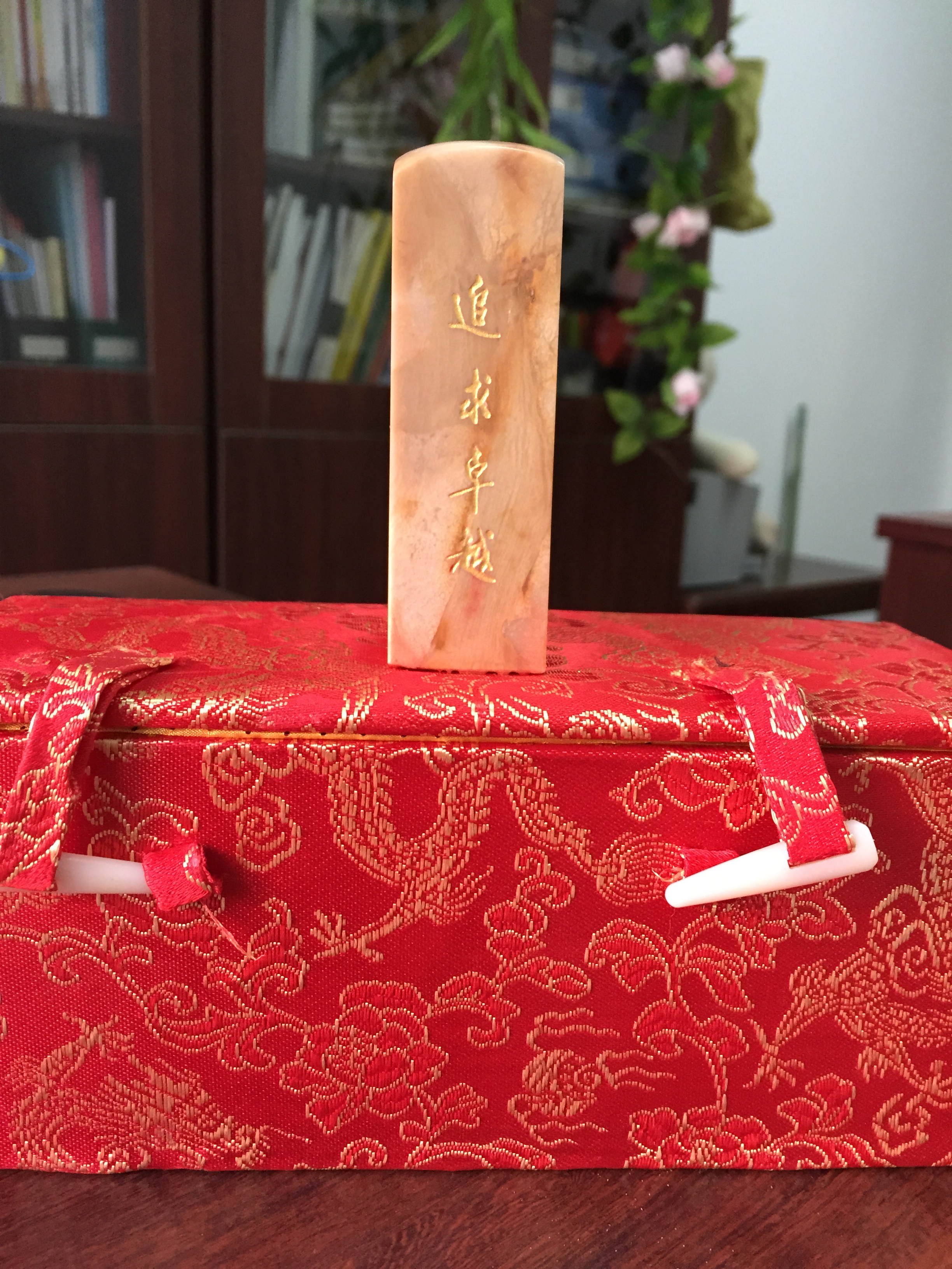 李岚清同志赠与金沙的校训印章,尺寸为2.7×2.8×8.5厘米,昌化石材质。