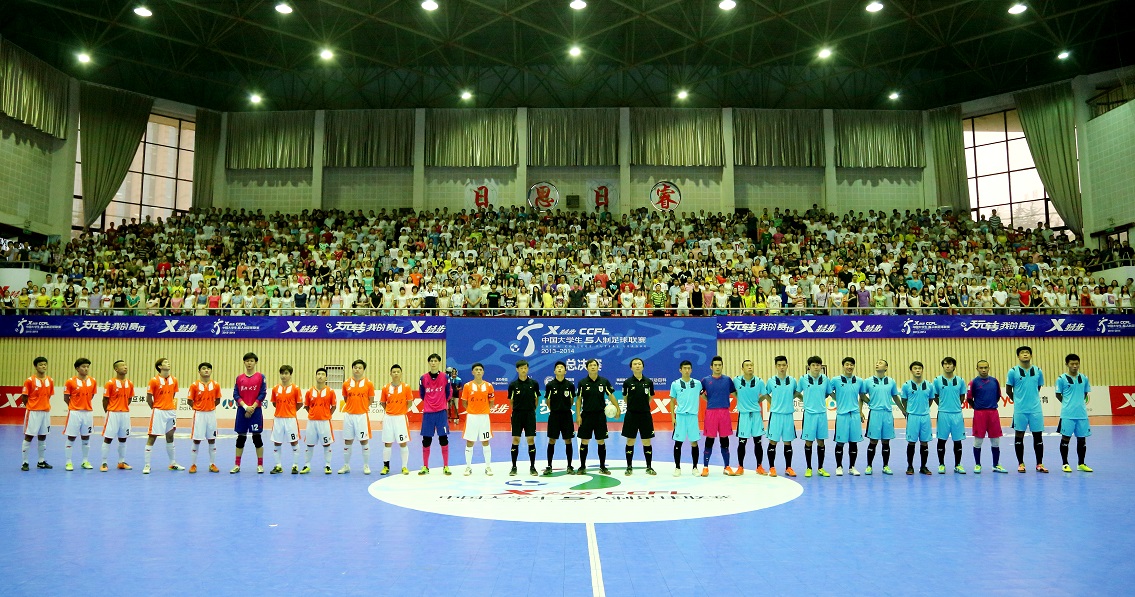 由中国大学生体育协会、中国足球协会共同主办, 2013-2014赛季特步中国大学生五人制足球赛(CCFL)全国总决赛于2014年6月20日19:00在湖北大学体育馆迎来了首场总决赛。金沙官方登录入口客场挑战主场八年未尝败绩的湖北大学,现场不仅吸引了湖北大学的近两千名学子为之加油助威,武汉电视台也全程直播了比赛实况。在巴西世界杯吸引全球焦点的时候,而这一场中国校园足球赛事在这个时间成为了大学生们瞩目的焦点。