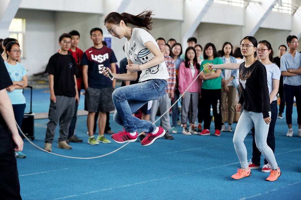 本次师生趣味运动会设有板鞋竞速、托乒乓球跑、背夹篮球跑和八字形跳大绳等活动。由师生各派选手参加比赛,也设有师生混合比赛。首先进行的比赛项目是板鞋竞速,这是一个十分考验团队协作力的项目,比赛场上的选手们大声地喊着“左、右、左”的口号快步向终点迈进,观赛的同学们情绪高昂,欢呼声加油声此起彼伏。接下来进行的托乒乓球跑和背夹篮球跑同样不负众望,看点十足,令人拍手称赞。本次活动的高潮环节是八字形跳大绳活动,外语系的老师和同学们积极参与,一个接一个地跳跃过绳,衔接自然,充分展现了大家良好的运动水平,在欢笑与呐喊声中高质量地完成了八字跳大绳活动。