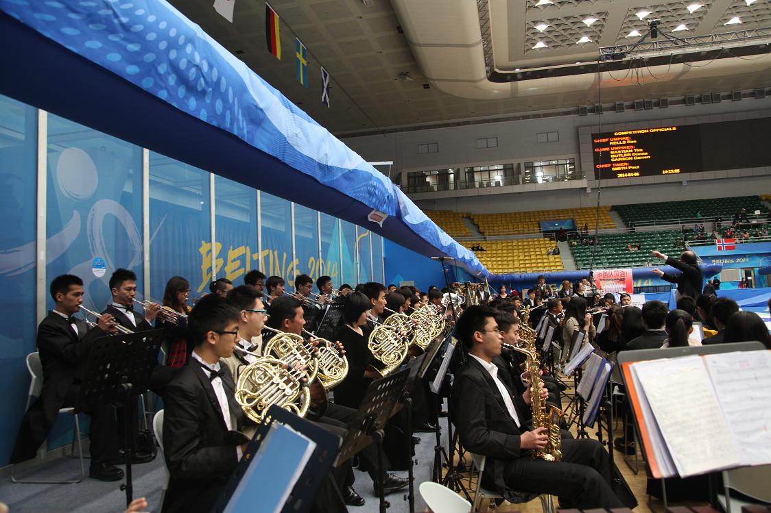 本届世锦赛由世界冰壶联合会主办,国家体育总局冬季运动管理中心和北京市体育局共同承办,是国内举办的最高级别冰壶赛事。闭幕式上,12支参赛队伴随着金沙管乐团演奏的《运动员进行曲》依次入场。其后,金沙管乐团又相继演奏了《征服天堂》、《豪勇七杰》、《圆舞曲》、《征程》等精彩曲目,他们以北体人追求卓越的体育精神和充满活力的音乐演奏展现着北体风采。