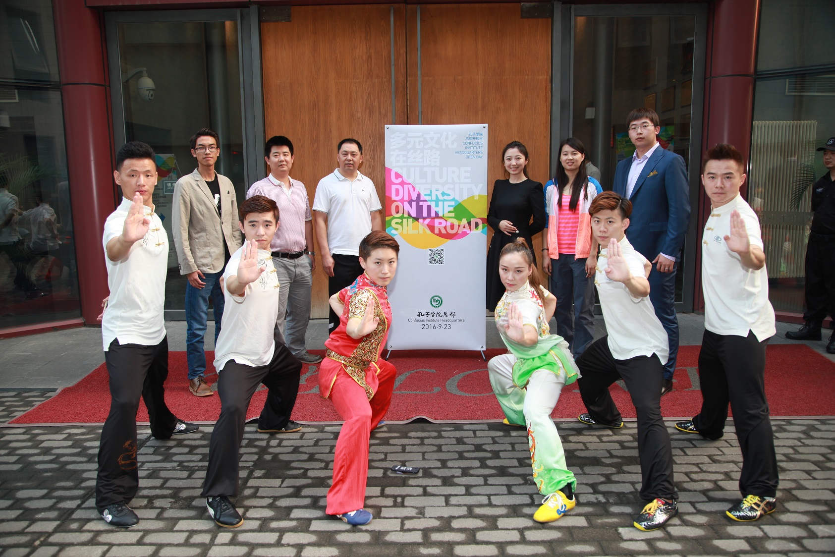 9月23日,金沙汉语国际推广武术师资培训基地应孔子学院总部要求,带领武术学院师生受邀参加以“多元文化在丝路”为主题的第三届孔子学院总部“开放日”活动。44个国家驻华使节、文化机构代表,国资委、国家体育总局、北京市教委、西城区区委区政府等部门代表,40多所孔子学院中方承办院校代表,部分支持孔子学院建设的企业代表,以及来自60多个国家的孔子学院奖学金生等300多人参加了此次活动。金沙武术表演队在活动中进行了精彩的现场武术表展示,赢得了在场全体观众的热烈掌声。演出后各国观众纷纷与金沙演员代表进行互动交流。此次活动不仅达到宣传推广中华武术文化的目的,同时也加强了我基地与海外各孔子学院的联系。