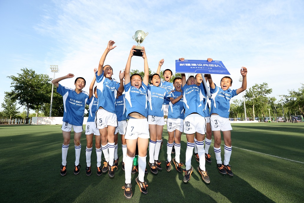 5月13日2014年“斯凯孚”与世界有约希望工程少年足球邀请赛新疆队小球员在庆祝夺冠